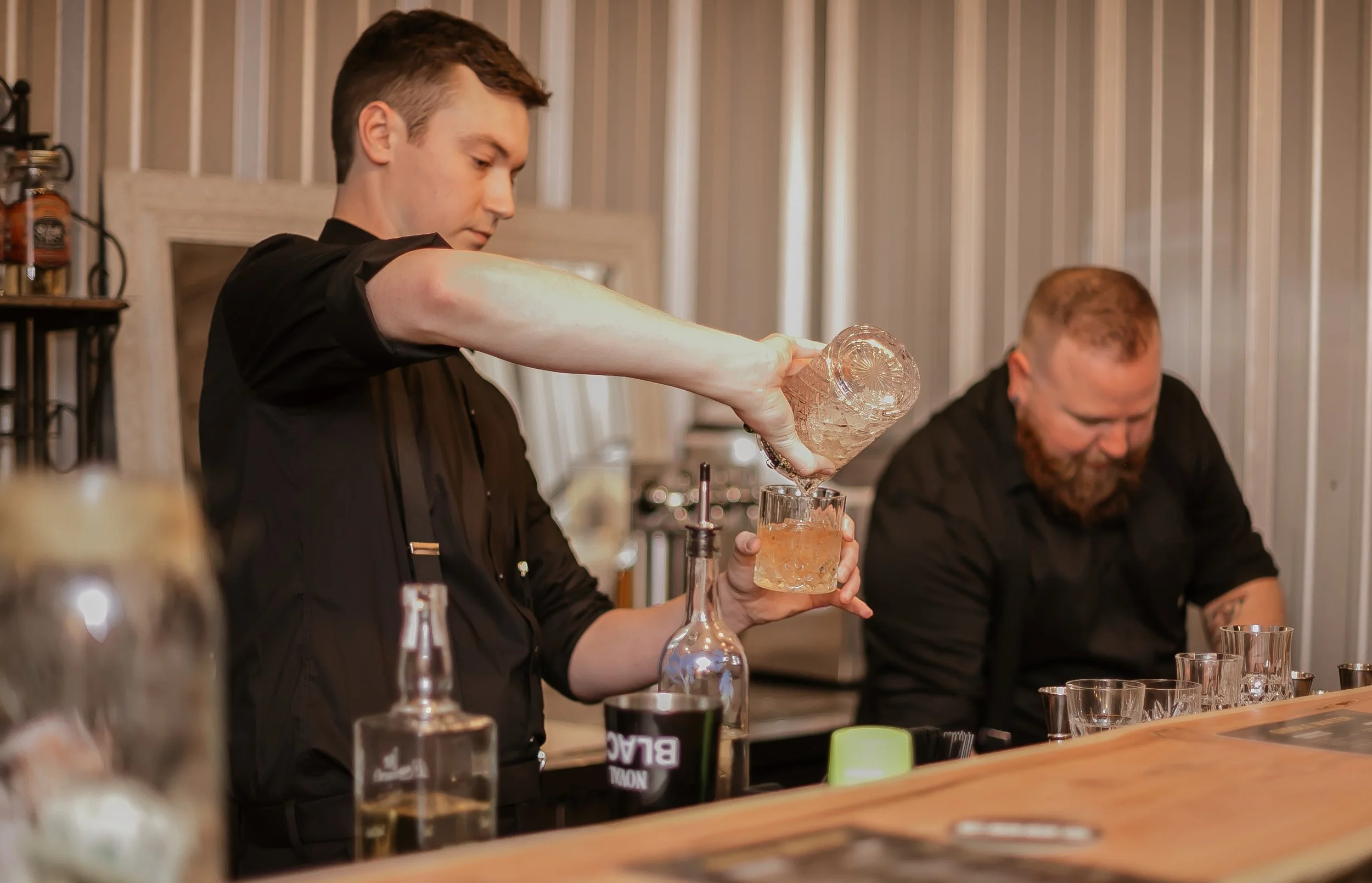 Cream Cheese Deviled Eggs, topped with Bacon, Jalapenos, served with 3 Picked Okra Spears